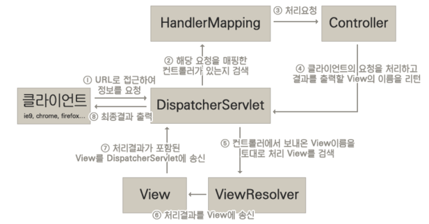 - DispatcherServlet이 클라이언트의 요청을 가로챈다.
