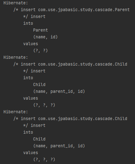 // CASCADE 를 설정한 경우 한번만 실행해도 parent 에서 CASCADE 설정이 되어 있음으로