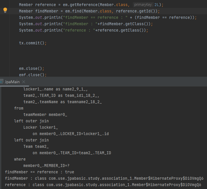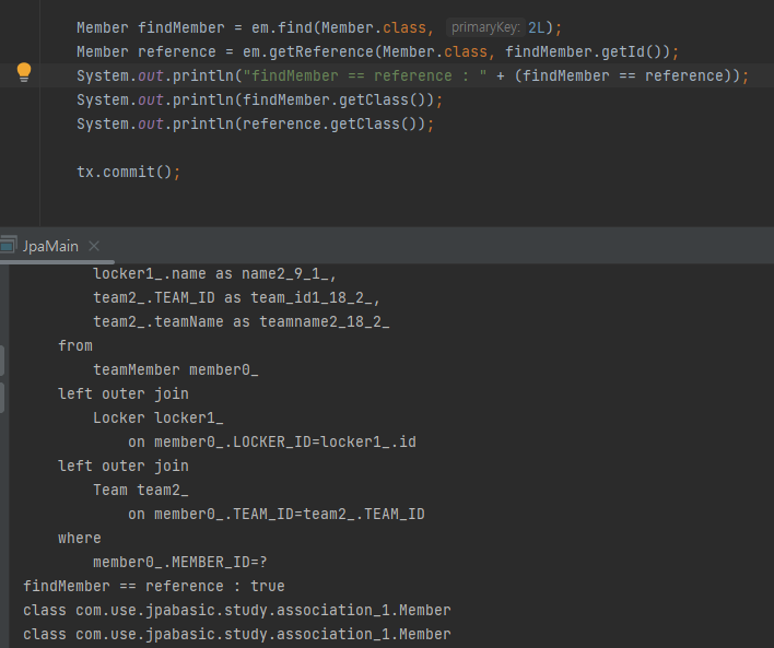 System.out.println(findMember.getClass() + " " + findMember.getId());