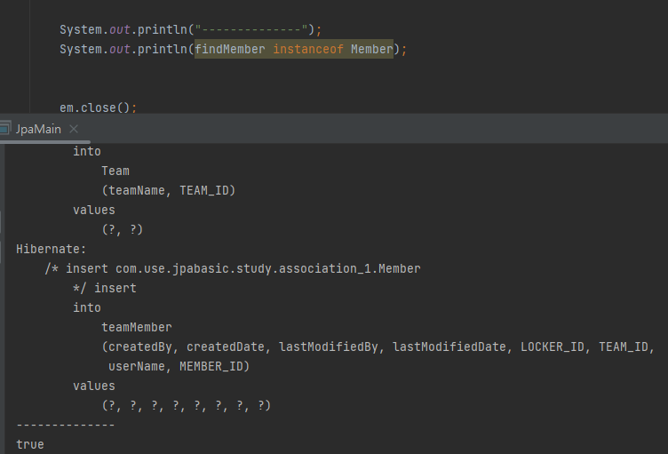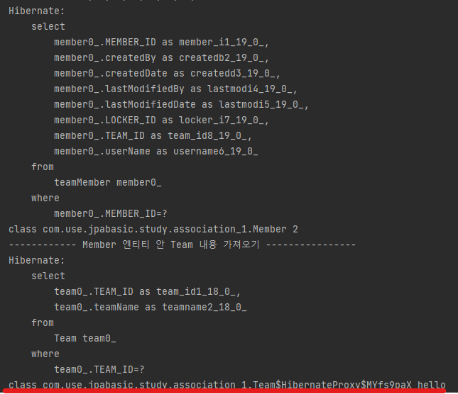 System.out.println(findMember.getTeam().getClass()+" "+findMember.getTeam().getTeamName());