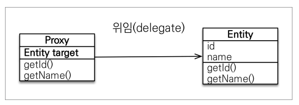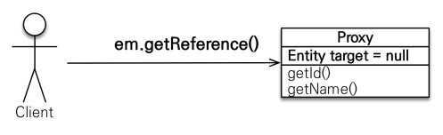 => 여기서 Proxy 라는 이름의 가짜 클래스 생성!! target 에는 실제 Entity 의 Reference 를 가리킴