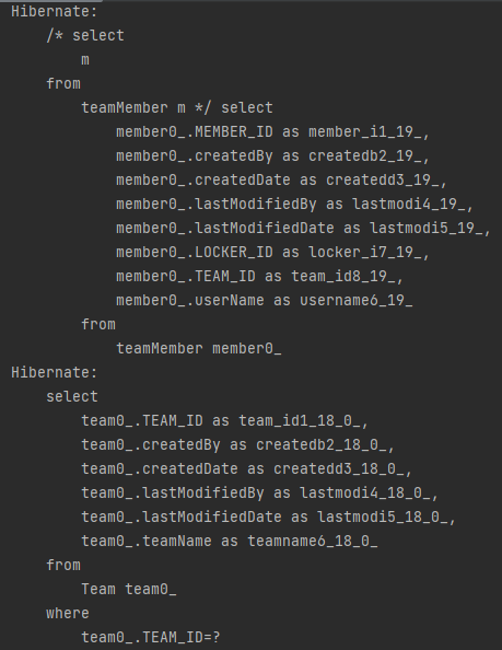 // member 에 있는 team 객체를 조회할 때 다시 select 쿼리가 나가고