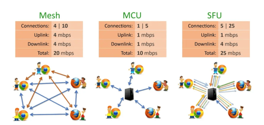 2) WebRTC 의 종류 : Mash, MCU, SFU