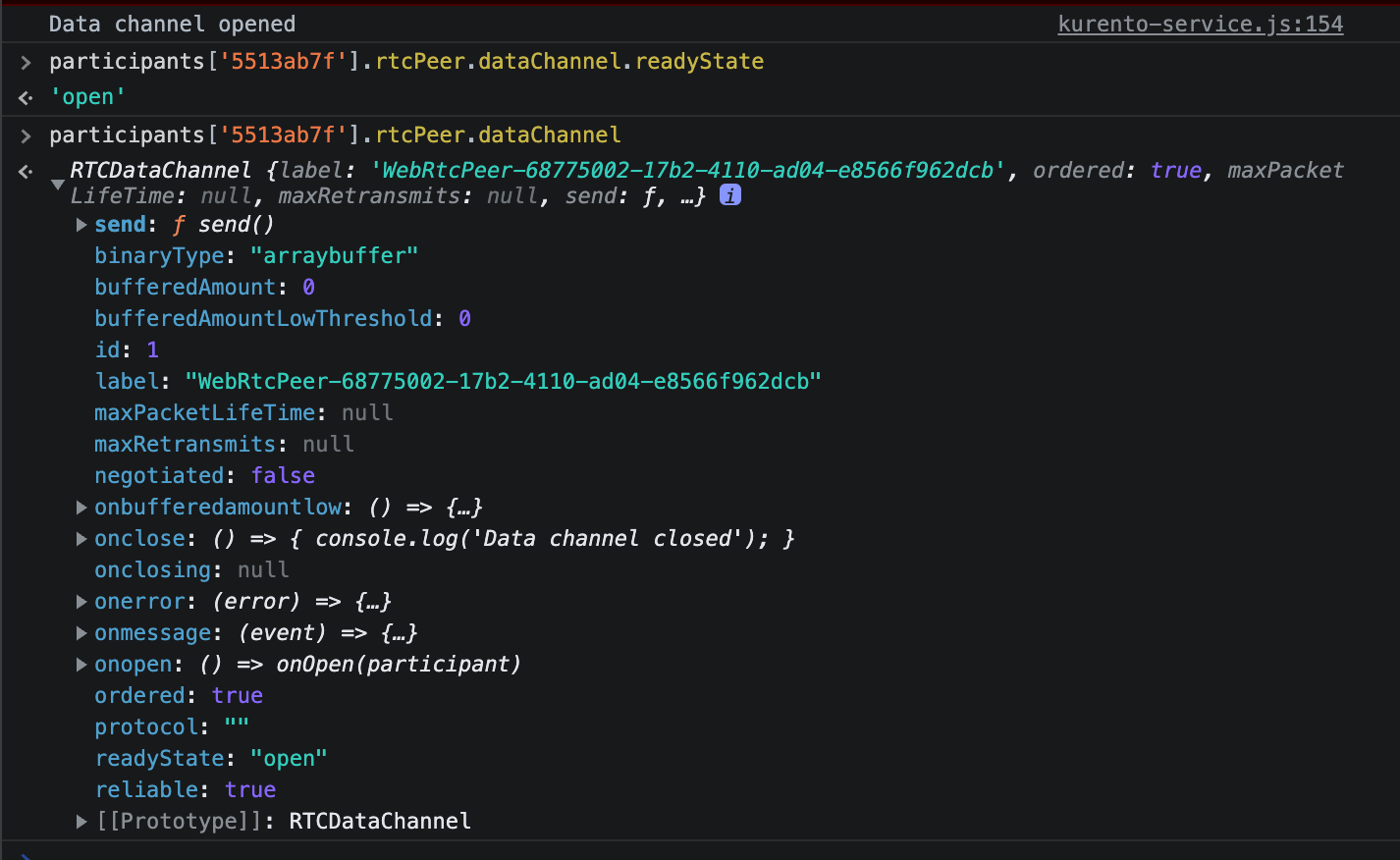 - 결과 정상적으로 datachannel 이 open 되는 것을 확인 할 수 있었다.