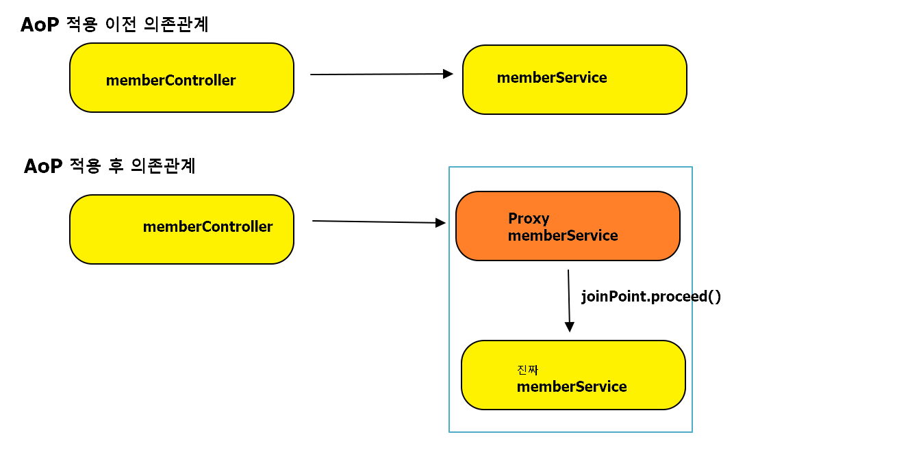 - 회원가입, 회원 조회 시간을 측정하는 기능은 핵심 관심 사항이 아니다 => 시간을 측정하는 로직은 공통 관심 사항