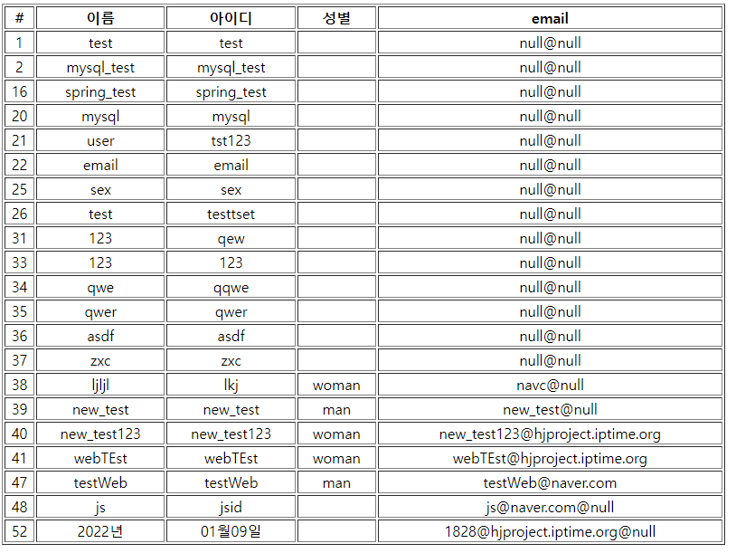 이로써 가장 해보고 싶었던 spring 과 Mysql 을 연동하여 회원가입 하는 것이 가능해졌다. 앞으로 추가할 것은 회원 가입 입 후 로그인 기능 구현, 로그인 후 웹 메일 발송 기능 구현 등을 해볼 예정이다.