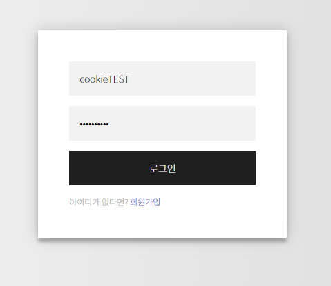 2) cookieTEST 로 회원가입하고 로그인 해보자