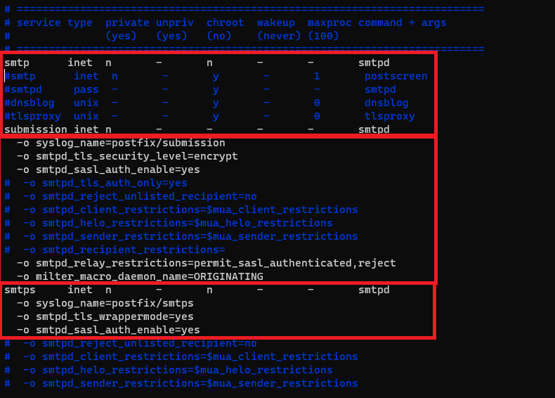 여기까지 postfix 에 대한 설정과 smtps 설정을 완료했습니다. 쉽게 생각하시면 메일을 보낼 준비는 다 된 것 입니다.