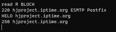 2) 명령어2 : HELO [자신의 메일 도메인 주소] -> 250 [메일 도메인 주소] 가 나와야 합니다
