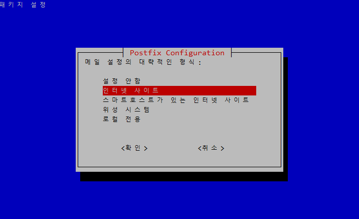 1. 다음 명령어를 사용하여 postfix 를 설치합니다. 참 다행히도 postfix는 처음 설치 된 후 쉽게 설정 할 수 있도록 gui를 지원합니다. 고로 보다 기본 설정은 보다 쉽게 가능합니다